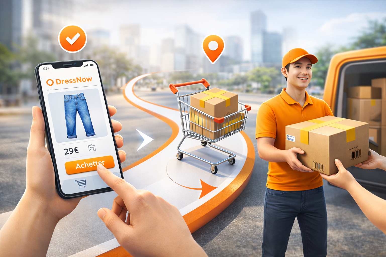 DressNow transforme vos magasins physiques en centres de distribution express, permettant à vos clients de recevoir leurs achats en moins d'une heure, tout en augmentant vos ventes et en optimisant votre inventaire.